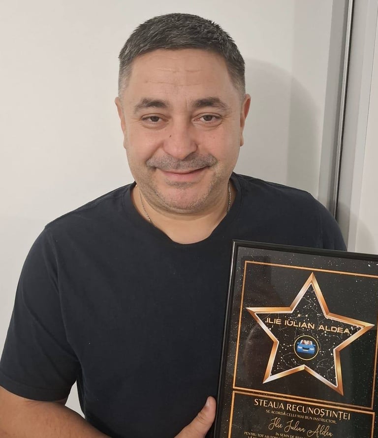 Mă numesc Iulian Aldea și sunt instructor de legislație auto categoria B, pasionat de domeniul auto și de formarea unor șoferi responsabili și bine pregătiți. De-a lungul anilor, am ajutat sute de cursanți să își îndeplinească visul de a obține permisul de conducere, iar peste 90% dintre ei au promovat examenul din prima încercare. Cred cu tărie că „să conduci este o plăcere”, nu un motiv de stres, iar misiunea mea este să transform învățarea legislației rutiere într-un proces clar, logic și ușor de înțeles.